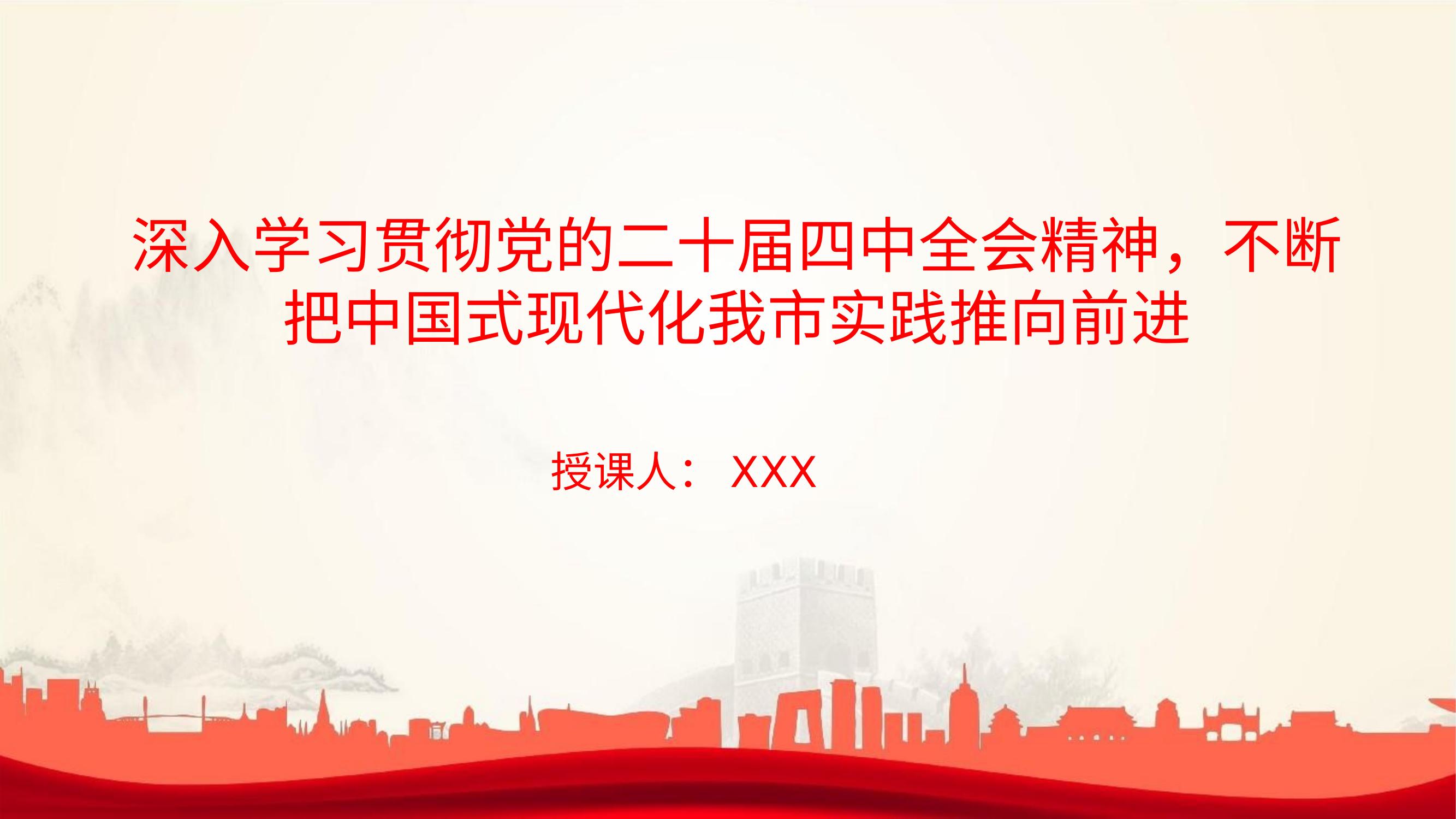 党课ppt:深入学习贯彻党的二十届四中全会精神,不断把中国式现代化我市实践推向前进